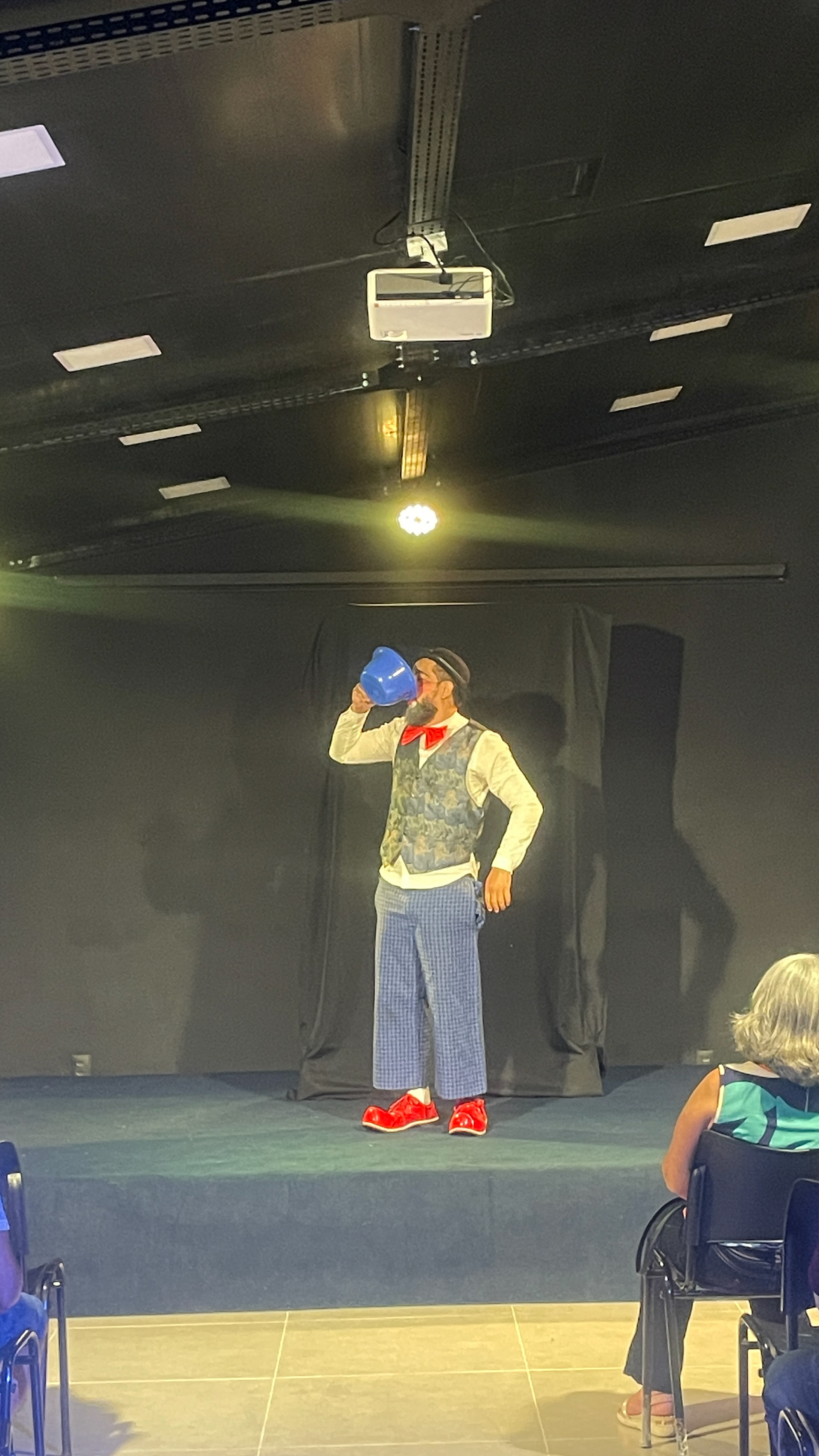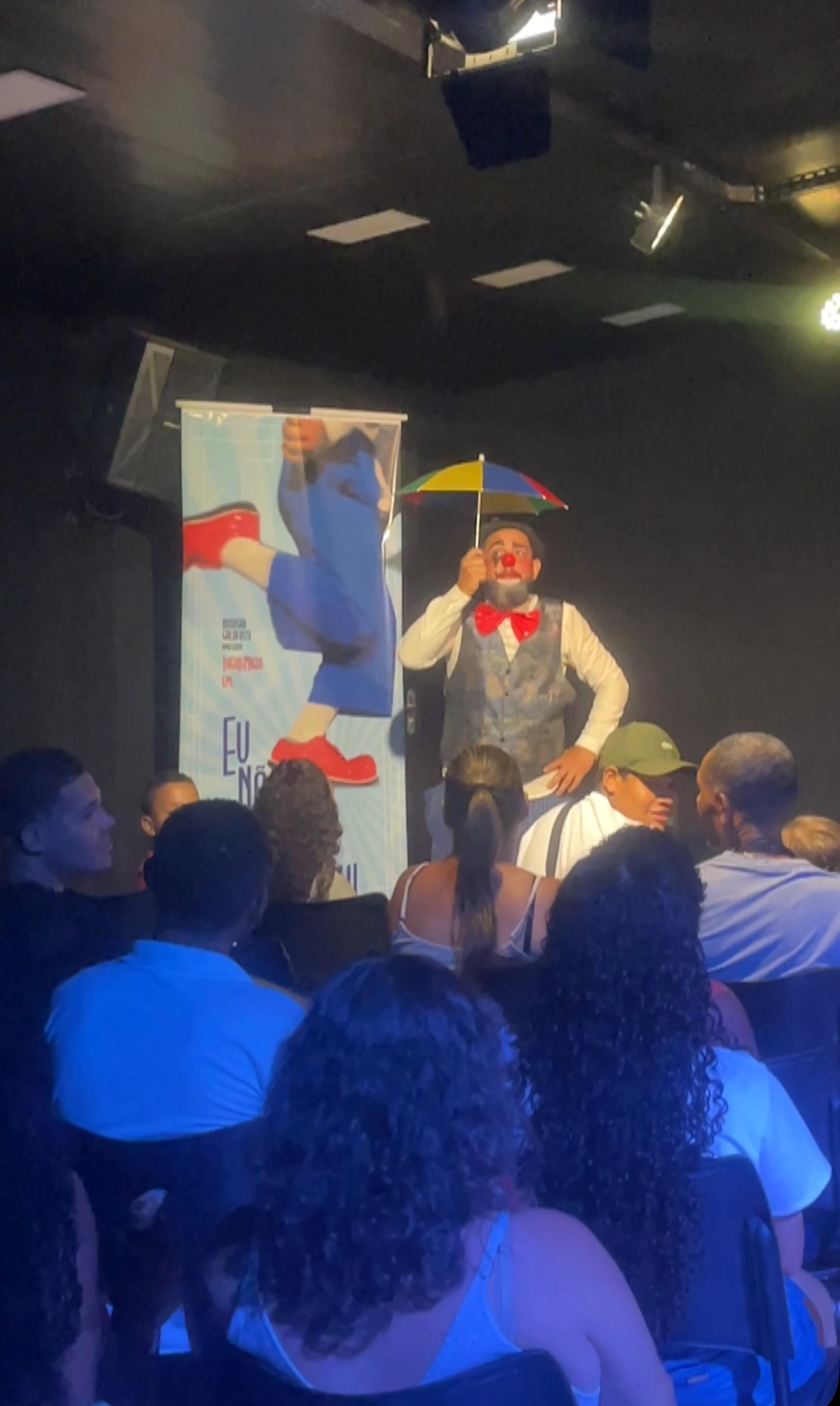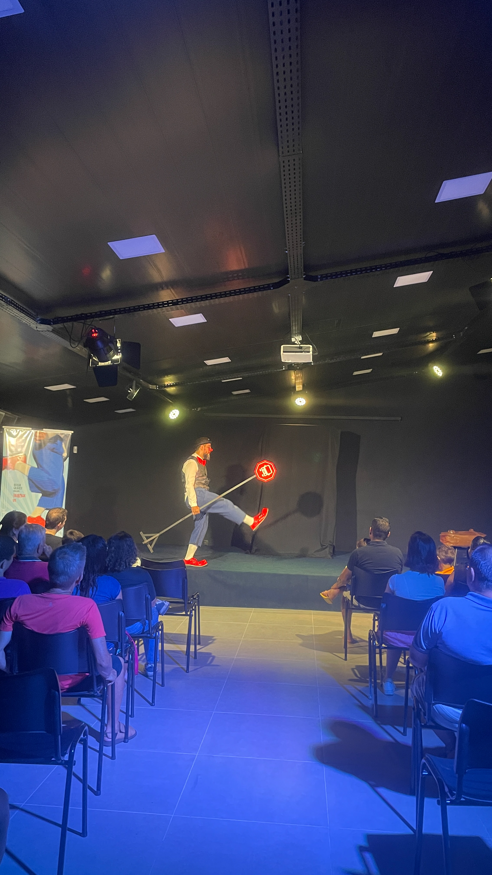 Nesse espetáculo solo, Lucas Diniz traz seu palhaço Théolemigue para viver situações cômicas do cotidiano.